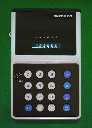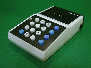 | 携帯電卓としてはかなり初期のモデル。携帯電卓と言うにはかなり大ぶりですが。 オムロンはこの頃からすでに丸キーを採用。 画像でも良く見ると確認できますが、青のキーと薄紫のキーがあります。 キーに3色使っている電卓はいくつもありますが、 こんな微妙なこだわりの3色を使っているのはこのモデルくらいでしょう。 無骨なんだけど美しい電源スイッチのデザインも秀逸。大好きな電卓の一つです。 ちなみに親友がフリーマーケットで見つけてくれました。3934! | ||